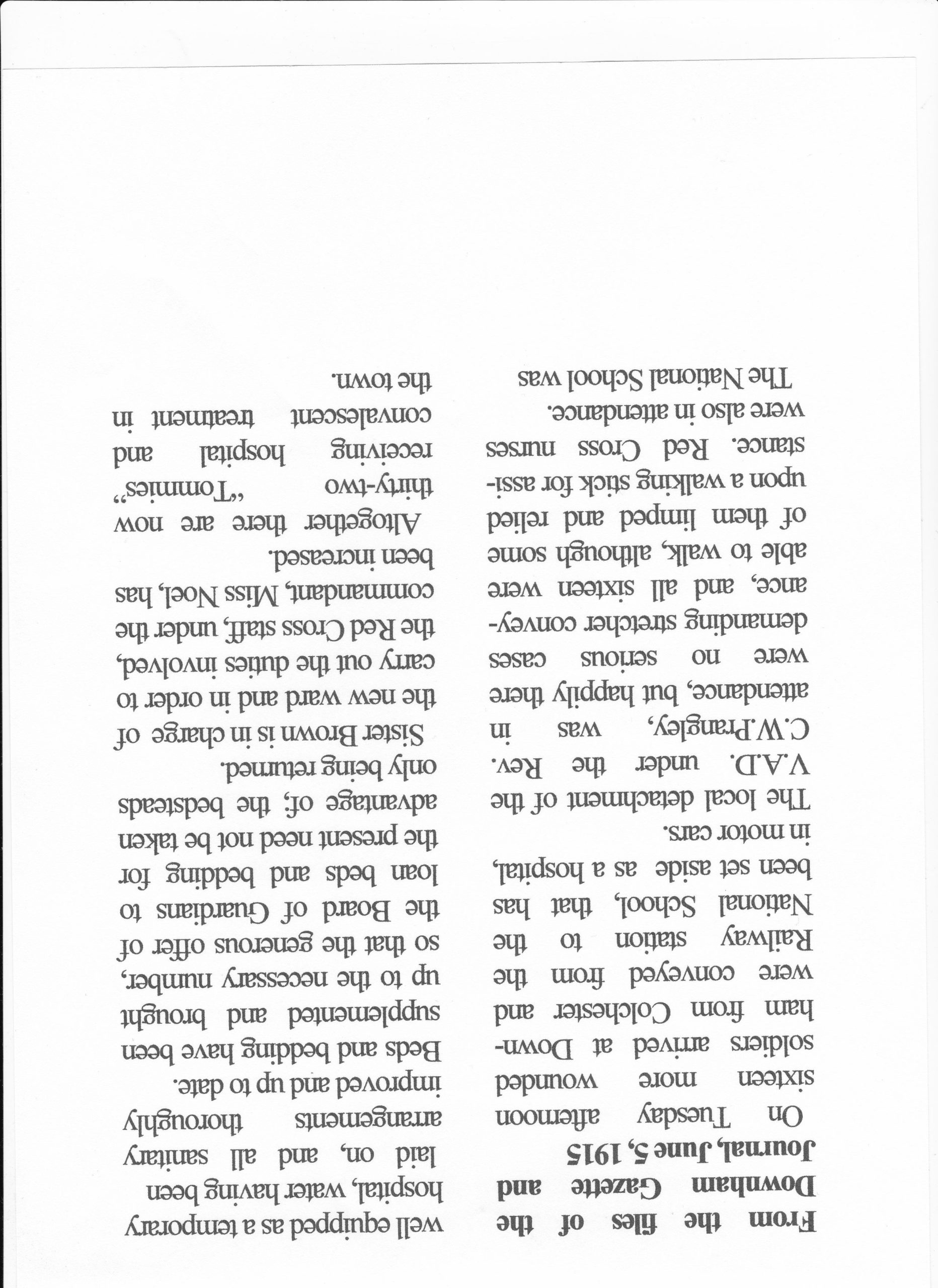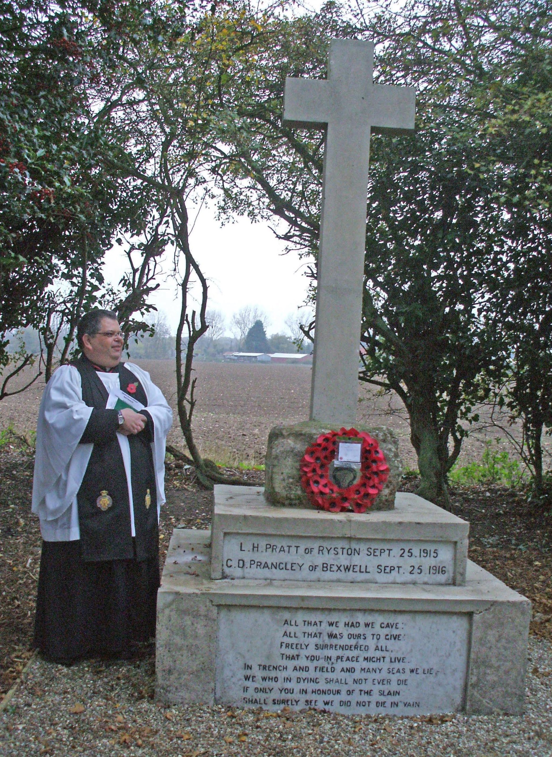 Fr James Mather at the restoration service of the memorial to Leo Pratt of Ryston and Charles Dean Prangley 2014 . During June 1915 before his son had left Marlborough , the Rev Prangley was helping wounded soldiers here in Downham :-